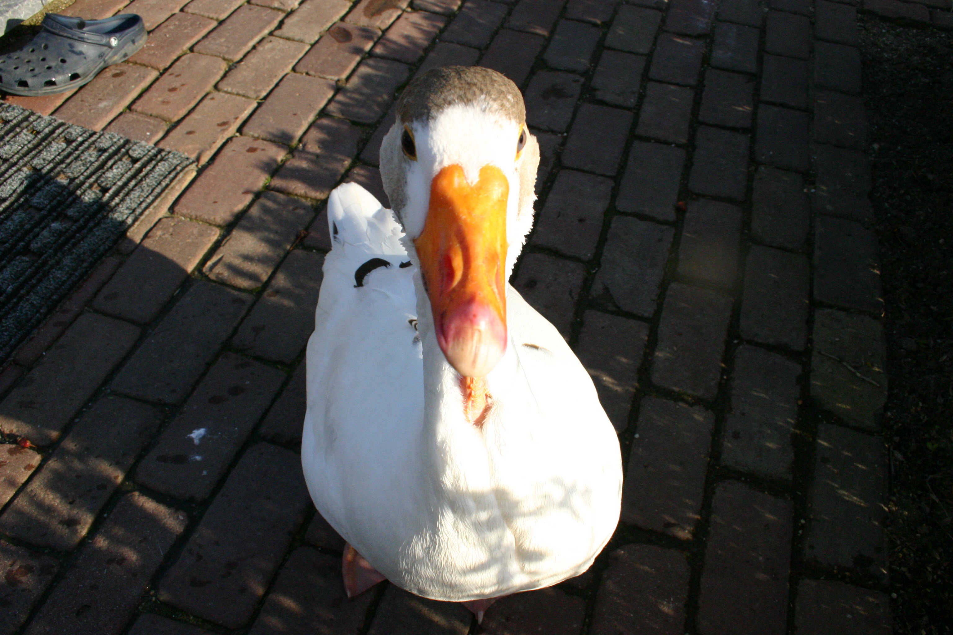 IMG_7951De Crocs van manlief zijn een ander geliefd item. Blauwe Crocs met ronde gaten erin. En Piep maar pikken op die gaten. De Crocs van hot naar her slepend. En manlief maar zoeken naar zijn Crocs. Zelfs als hij ze aan heeft kan Piep het niet laten. Tot vervelends toe blijft hij er op pikken. Zij. Sorry, ben nog altijd niet gewend. Ik zou de Crocs eigenlijk moeten weggooien. Ze hebben echt hun langste tijd gehad. De zolen zijn zo dun nu, dat je ieder oneffenheidje moet voelen. Maar dat kan ik Piep niet aandoen. En manlief trouwens ook niet…