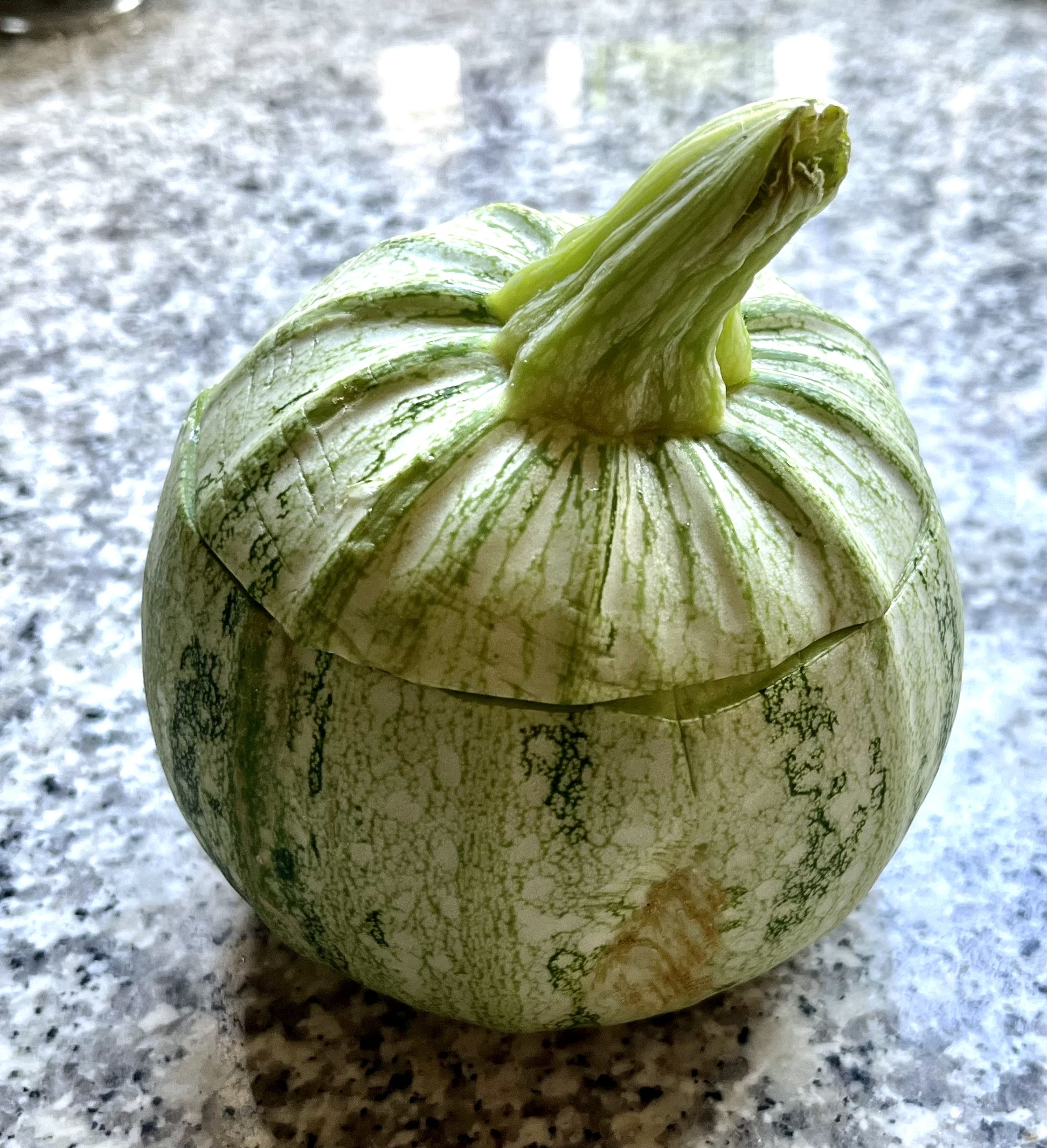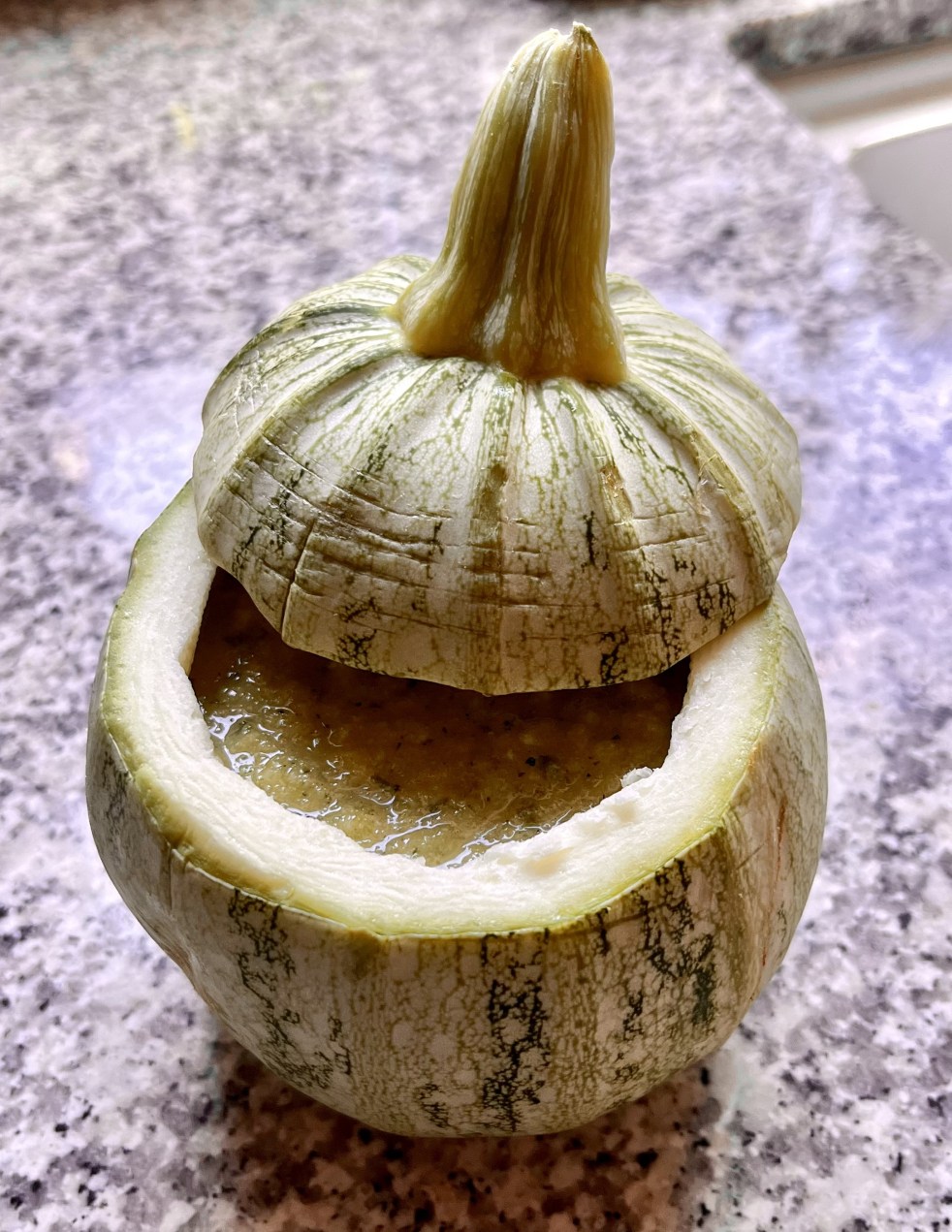 Overigens zijn de bolcourgetjes echt heel schattig. Het is zo leuk om de gazpacho te presenteren in dit natuurlijke kommetje. Kijk nou toch!