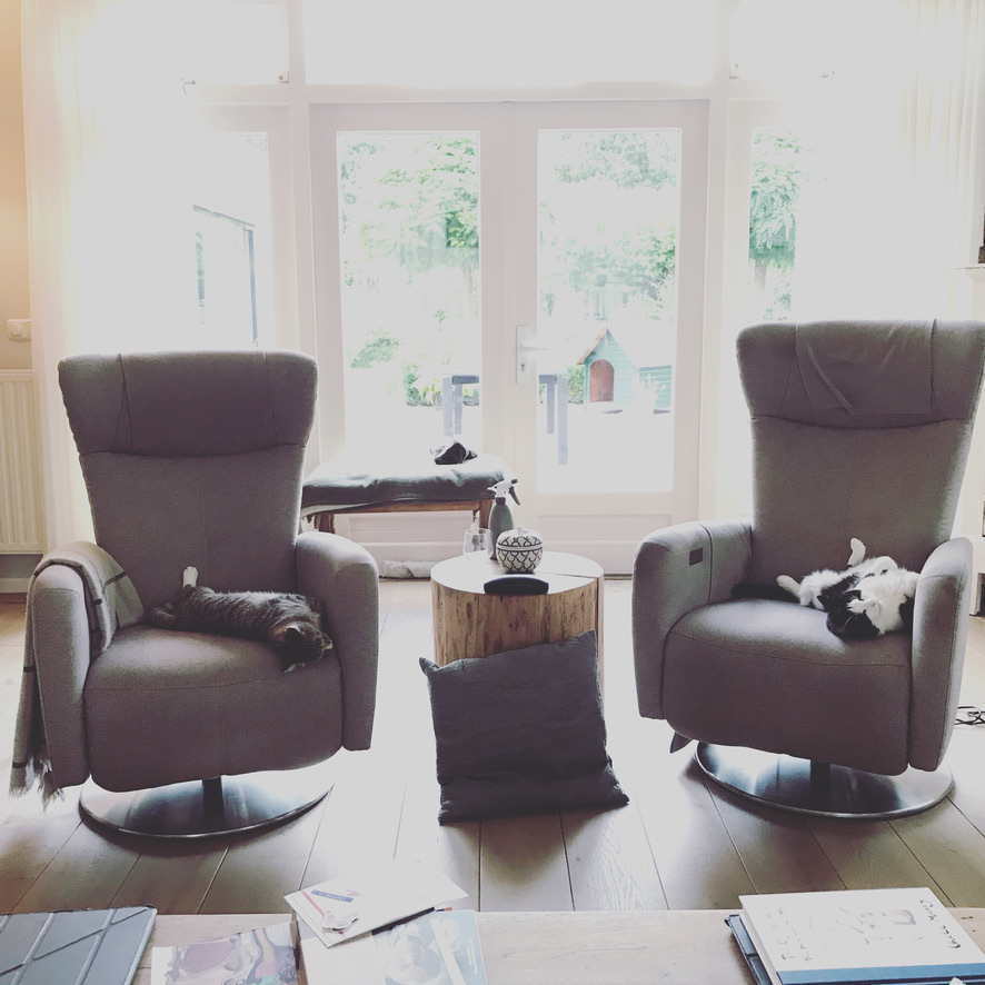 Waar we vooral heel blij mee zijn is dat Greumel een echte mensenkat is. Ze is altijd bij ons in de buurt. Niet dat ze een schootkat is, dat niet. Maar ze komt geregeld langs voor een aai of om langs de benen te strijken. En dat gaat gepaard met een gesnor! Hard! Ik word er ’s nachts wel eens wakker van wanneer ze naast me komt liggen met haar kopje naast me op het kussen.