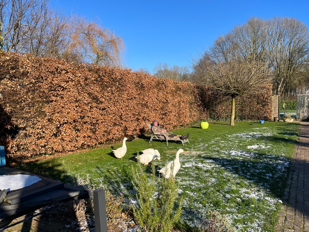 Vannacht heeft het weer flink gevroren. Wanneer ik naar de wei loop hoor ik de ganzen zachtjes gakken. Zelfs zij vonden het koud en hebben uit zichzelf het nachthok opgezocht. Wanneer ze me horen naderen komen ze langzaam tevoorschijn. Om bij de loopeendjes te komen moeten zij uit het hok. Voorzichtig til ik het bubbel plastic op dat tegen de kou over het hok van de eendjes ligt. En zie dat de tijd is aangebroken om afscheid te nemen van Broene. Sneller dan verwacht. Ze ligt langs de verwarming maar waar ze normaalgesproken kwiek omhoog kijkt, wiegt ze nu de hele tijd haar kopje heen en weer. Haar oogjes staan op afwezig. Het ziet er enorm zielig uit. Ik verzorg eerst de rest van de beestenboel om haar niet te veel te verstoren. Laat Blondie bij de ganzen. Ze zit al een tijdje luid te kwaken om uit gelaten te worden. En dan is het wachten op manlief om hem het slechte nieuws te brengen.
