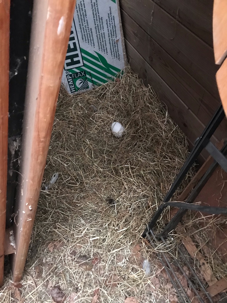 Onze witte kippen, de Speedy’s vinden het weer nodig om overal en nergens hun mooie witte eitjes te leggen. Ze hebben een paar mooie leghokjes maar nee. De dames leggen hun eitjes liever ‘ins freie’.