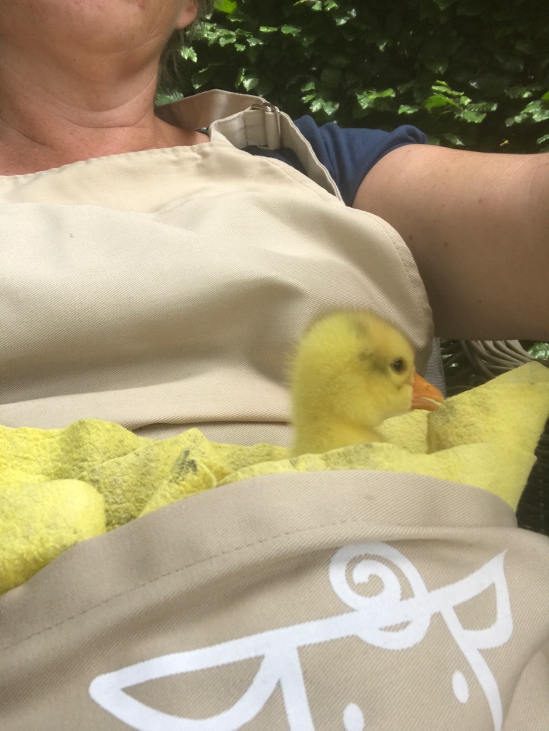 Voorzichtig lieten we madame in het water zakken en vanaf het allereerste moment was ze verrukt van het water. Ze poedelde en kukelde kopje onder en draaide rondjes om manlief dat het een lieve lust was. Het leukst vond ze het om op zijn schouder te klimmen om dan weer in het water te glijden. En dit alles onder luid gepiep. Ze was helemaal in haar element. En wij waren dat ook. Helemaal verrukt van dat kleine pluizige bolletje in dat hele grote bad. Ik heb er een filmpje van gemaakt dat helaas niet te gebruiken is voor de blog omdat manlief er lol aan heeft om in zijn niks te zwemmen. Heerlijk natuurlijk maar niet geschikt voor Youtube in dit geval.